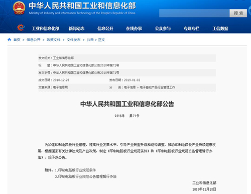 【PCB信息網(wǎng)】據(jù)工業(yè)和信息化部1月2日消息,為加強(qiáng)印制電路板行業(yè)管理,提高行業(yè)發(fā)展水平,引導(dǎo)產(chǎn)業(yè)轉(zhuǎn)型升級(jí)和結(jié)構(gòu)調(diào)整,推動(dòng)印制電路板產(chǎn)業(yè)持續(xù)健康發(fā)展,根據(jù)國(guó)家有關(guān)法律法規(guī)及產(chǎn)業(yè)政策,工業(yè)和信息化部制定《印制電路板行業(yè)規(guī)范條件》和《印制電路板行業(yè)規(guī)范公告管理暫行辦法》,現(xiàn)予以公告。