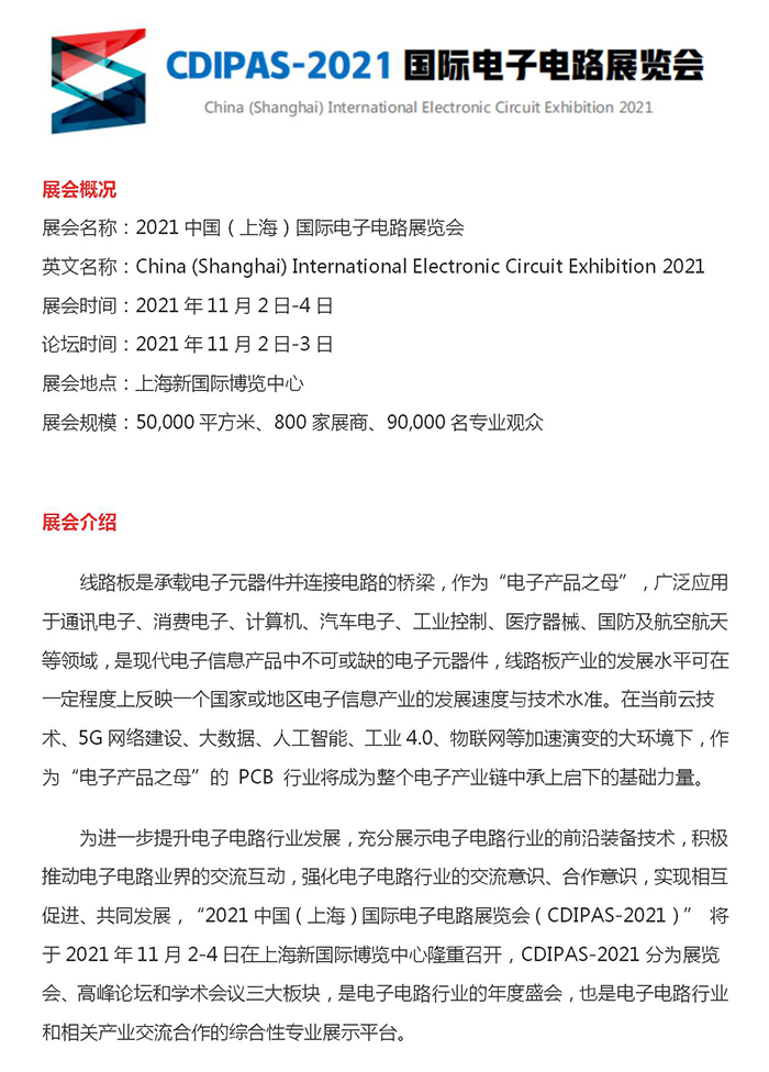 2021中國(上海)國際電子電路展覽會