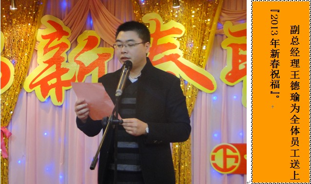 16:20,一場屬于萬正人的2013年新春聯(lián)歡會正式拉開序幕。主持人沈曉麗、鄧健的亮相之后,現(xiàn)場的氣氛愈加熱烈。本次新春聯(lián)歡會共分為四個環(huán)節(jié),即領(lǐng)導(dǎo)賀詞、年度表彰、幸運(yùn)抽獎、新春年夜飯。首先,副總經(jīng)理王德瑜為全體萬正人送上了新一年的賀詞。他一再強(qiáng)調(diào),正是全體萬正人團(tuán)結(jié)協(xié)作、積極進(jìn)取的優(yōu)良傳統(tǒng)和鍥而不舍的拼搏精神使公司迎難而上,勇克困難,為2012工作劃上了圓滿句號。同時,他指出,2013年公司將以“加快管理提升,提高質(zhì)量效益”為目標(biāo),要在管理提升、績效執(zhí)行、持續(xù)改進(jìn)、建好隊伍四個方面實現(xiàn)新的飛躍。王總振奮人心的賀詞讓大家內(nèi)心澎湃,士氣大振。現(xiàn)場的喝彩聲、掌聲絡(luò)繹不絕。