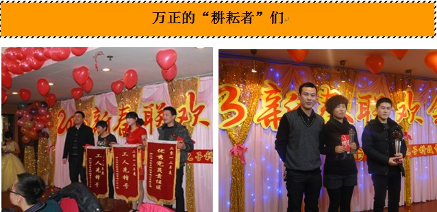 接著,王總為大家宣讀了公司發(fā)(2013)01號《關(guān)于“一區(qū)一號四崗”表彰決定》、公司發(fā)(2013)02號《關(guān)于二O一二年度“踐諾之星”表彰決定》。表彰環(huán)節(jié)正式開始。公司領(lǐng)導(dǎo)一一為2012年度“一區(qū)一號四崗”獲獎人員、“踐諾之星”頒發(fā)了獎杯、榮譽(yù)證書和獎金。他們就是萬正人心中的楷模,追逐著夢想的萬正人!也許平日的他們默默無聞,但是今天的他們卻閃閃發(fā)光,因為他們告訴了大家什么事盡職盡守,什么是創(chuàng)新突破,什么是同舟共濟(jì),什么是誠實守信,什么是堅守責(zé)任,什么是迎難而上。現(xiàn)場熱烈的掌聲此起彼伏,這充分表達(dá)了大家對夢想踐行者們的敬佩之情。