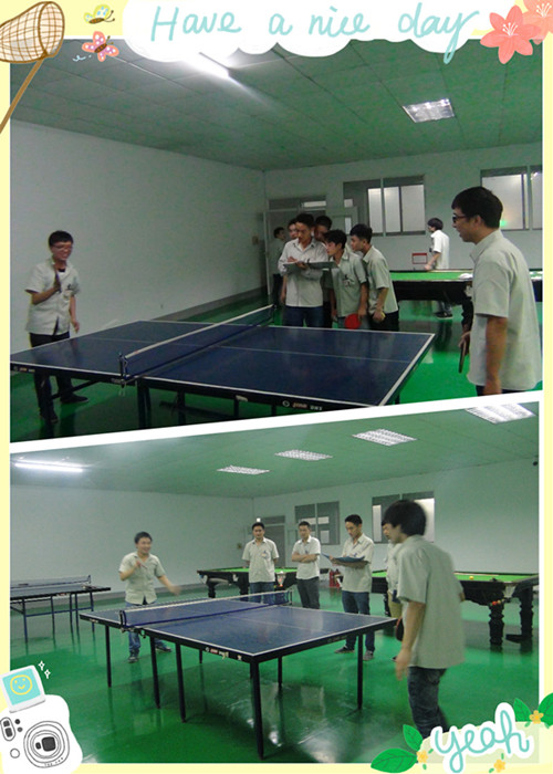 男子乒乓球賽勝出者分別是:行政部警衛組傳勇第一名;生產計劃部成型課銑床組王廣第二名;生產計劃部數控課鉆孔組熊冬第三名是;生產計劃部成型課銑床組杜軍第四名。