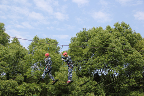 最后一個拓展項目為“飛奪瀘定橋”,這個項目中鍛煉的是克服個人心理恐懼,在逆境中尋求出路,挑戰(zhàn)自我。在高空中,穿越由若干個由鋼絲并連起來的木板搭建的懸橋,以最快的速度跑過,從而到達勝利的彼岸。在這個項目中,我告訴自己不要怕,勇于嘗試,才能發(fā)現(xiàn)平時生活中看不到自己的另一面。“睜大眼,握緊索道,快步走過”,事后想想,原來我的膽量并非想象中的小,呵呵……