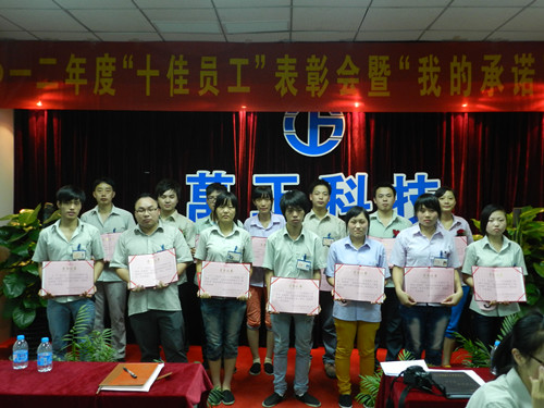 二O一二年七月二十二日下午12:30 整,2012年度“十佳員工”表彰會暨“我的承諾”演講比賽在公司培訓室正式舉行。副總經理王德瑜親自參加了本次活動,其他參加人員為公司高級工及以上人員。